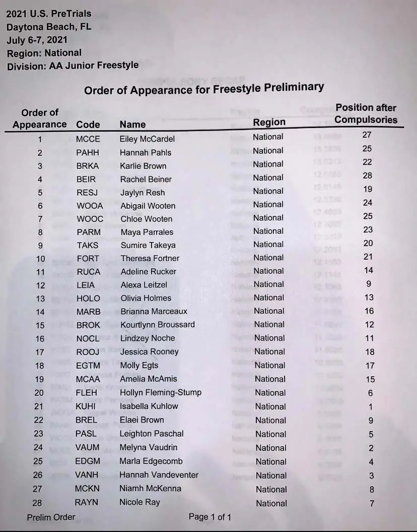 - Jr. AA Freestyle Qualifying Round Order of Appearance